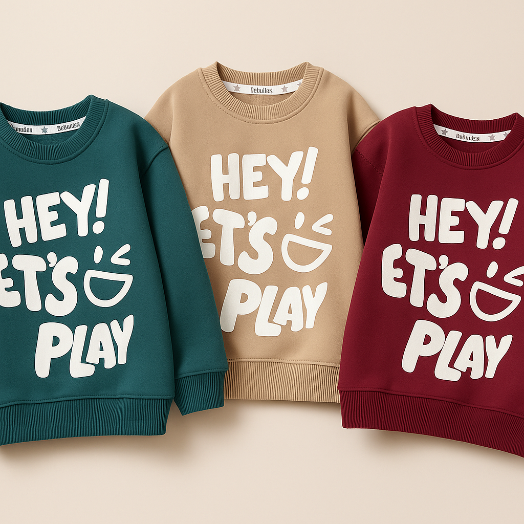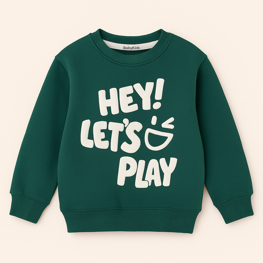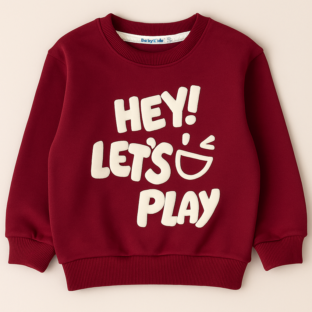 چاپ برجسته‌ی “HEY! LET’S PLAY” روی لباس، استایلی شاد و کودکانه بهش داده و برای دخترها و پسرها قابل استفاده‌ست.