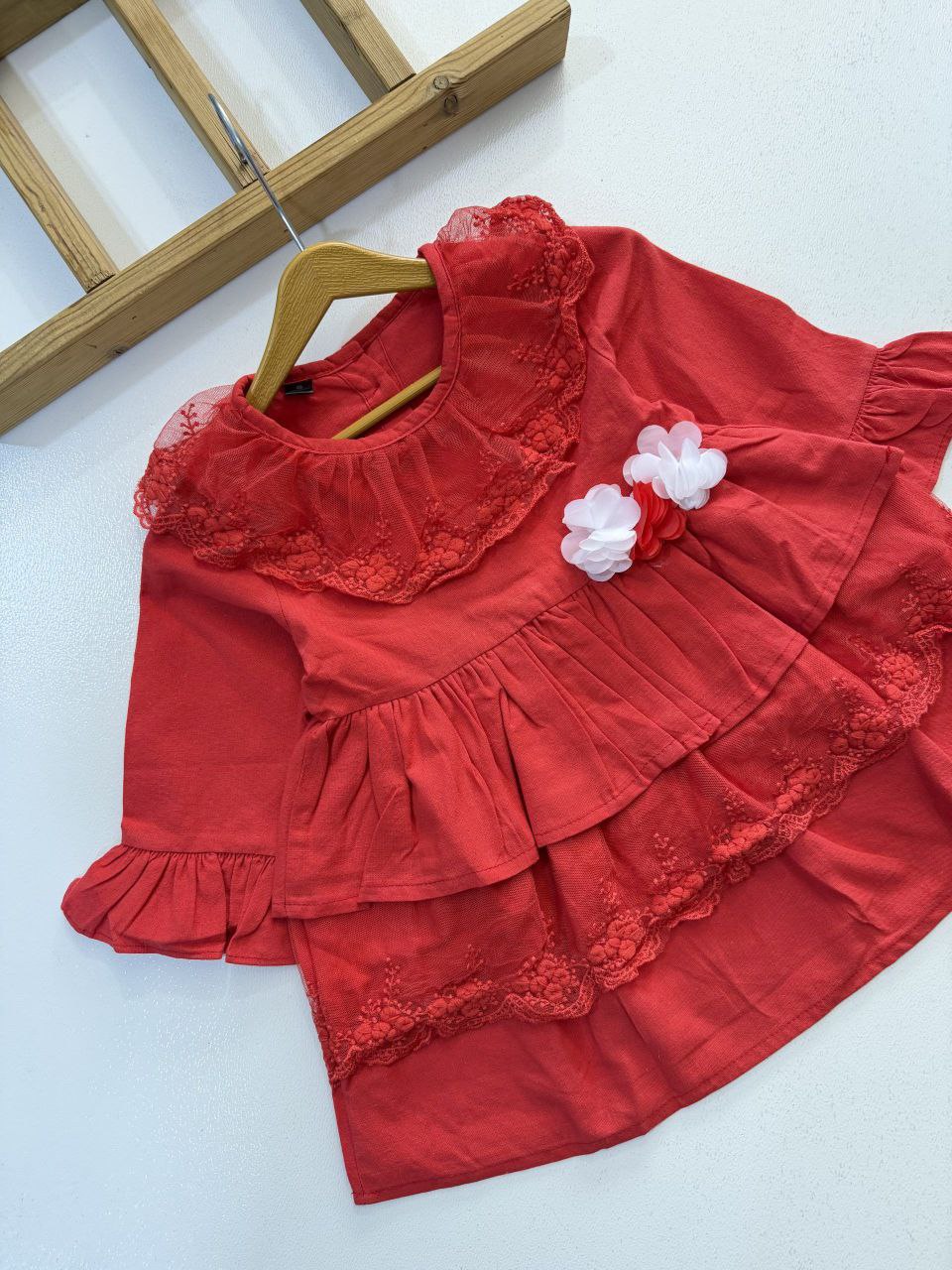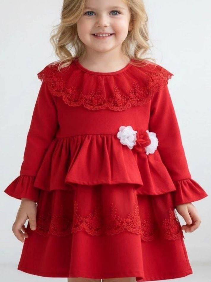 شب یلدا، جشنها و مهمانیهای زمستانی کوچولوی شماست. یقه گیپور کارشده، چینهای روی دامن و گلهای