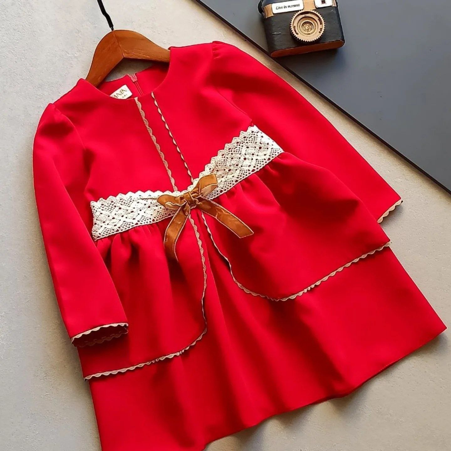 پیراهن دلبر یلدایی سلین ❤️🍉 – کرپ مازراتی درجه یک، مناسب ۲ تا ۸ سال